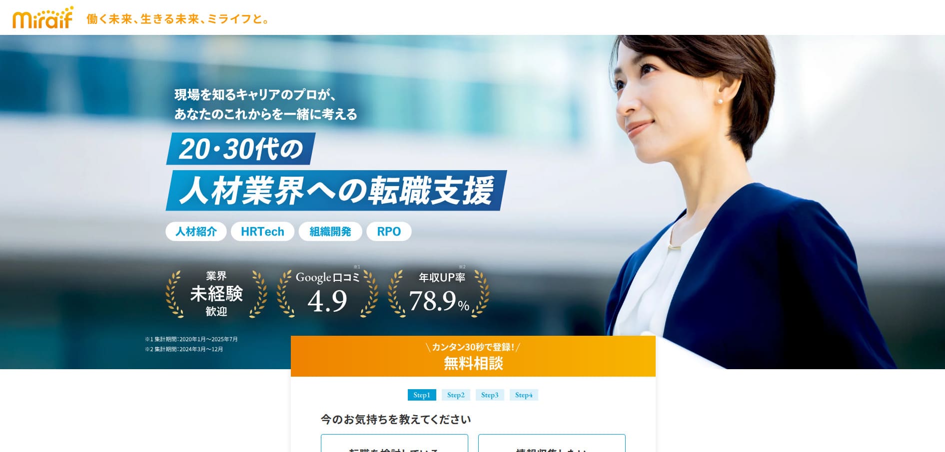 人材業界への転職を考えているなら、まずはミライフに相談してみませんか?